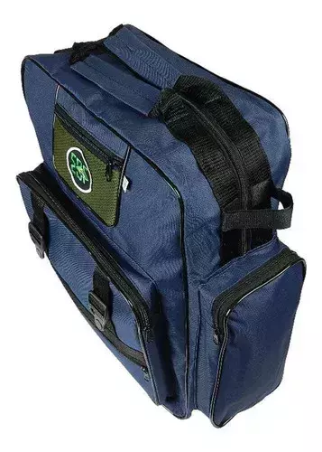 Mochila utilizada para guardar acessórios da tralha de pesca, camping ou uso em geral. Contêm 5 bolsos externos e alça para envolver a cintura.